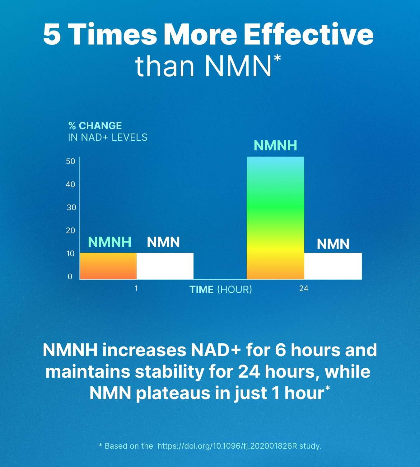 - 5 VECES MÁS EFECTIVO QUE EL NMN: No te conformes con menos. Nuestra fórmula avanzada contiene Dihidronicotinamida Mononucleótido, una forma superior de NAD que es 5 veces más efectiva que los suplementos de NMN.