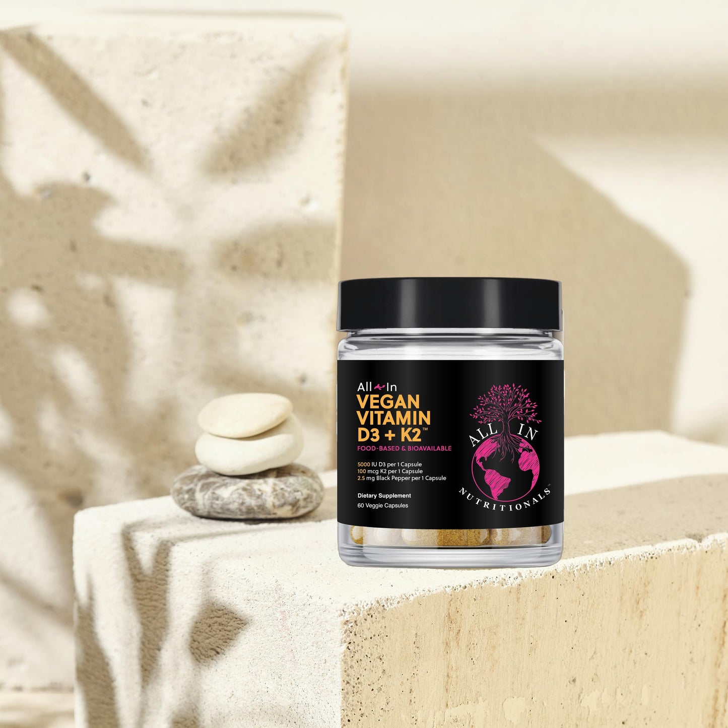 All In Nutritionals Vitamina D3 5000 IU y K2 Vegana 60 Cápsulas