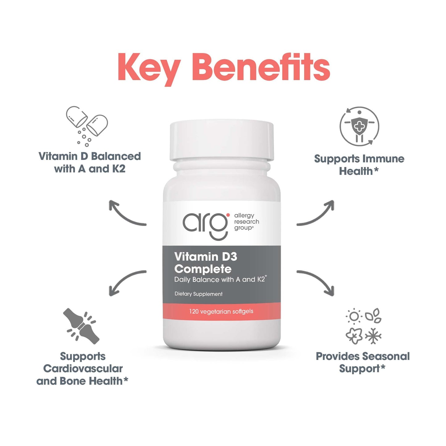 Allergy Research Group Vitamina D3 Completa con K2 Alta Potencia 120 cápsulas