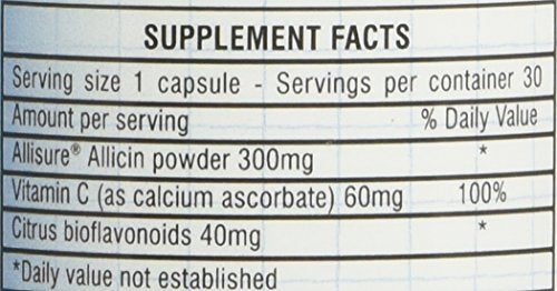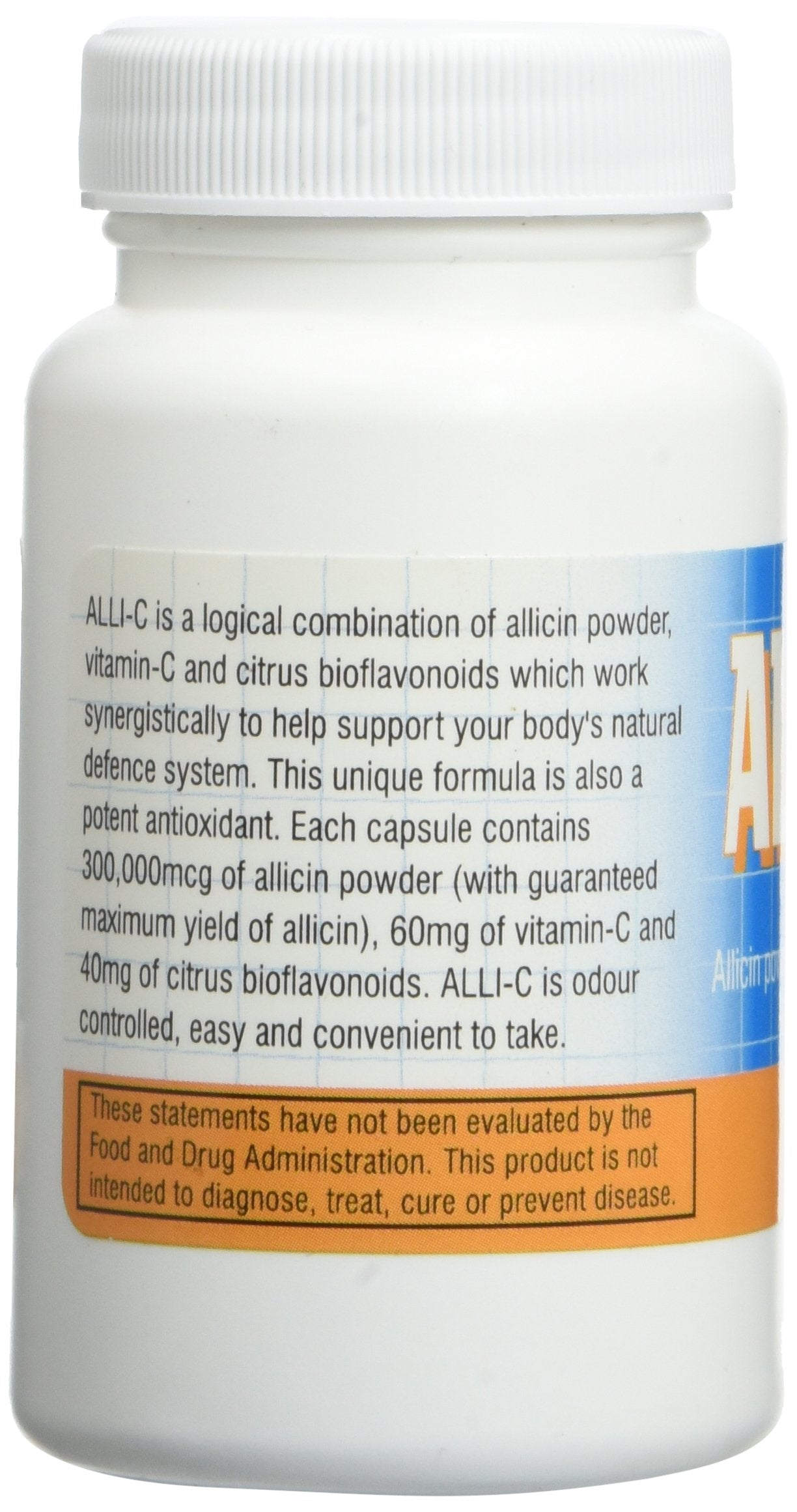 - Cada cápsula de Alli-C proporciona 300 mg de alicina Allisure más 60 mg de Vitamina C y 40 mg de bioflavonoides cítricos. Esta combinación ha demostrado científicamente ser letal para bacterias, incluyendo más de 300 cepas de MRSA y VRSA.