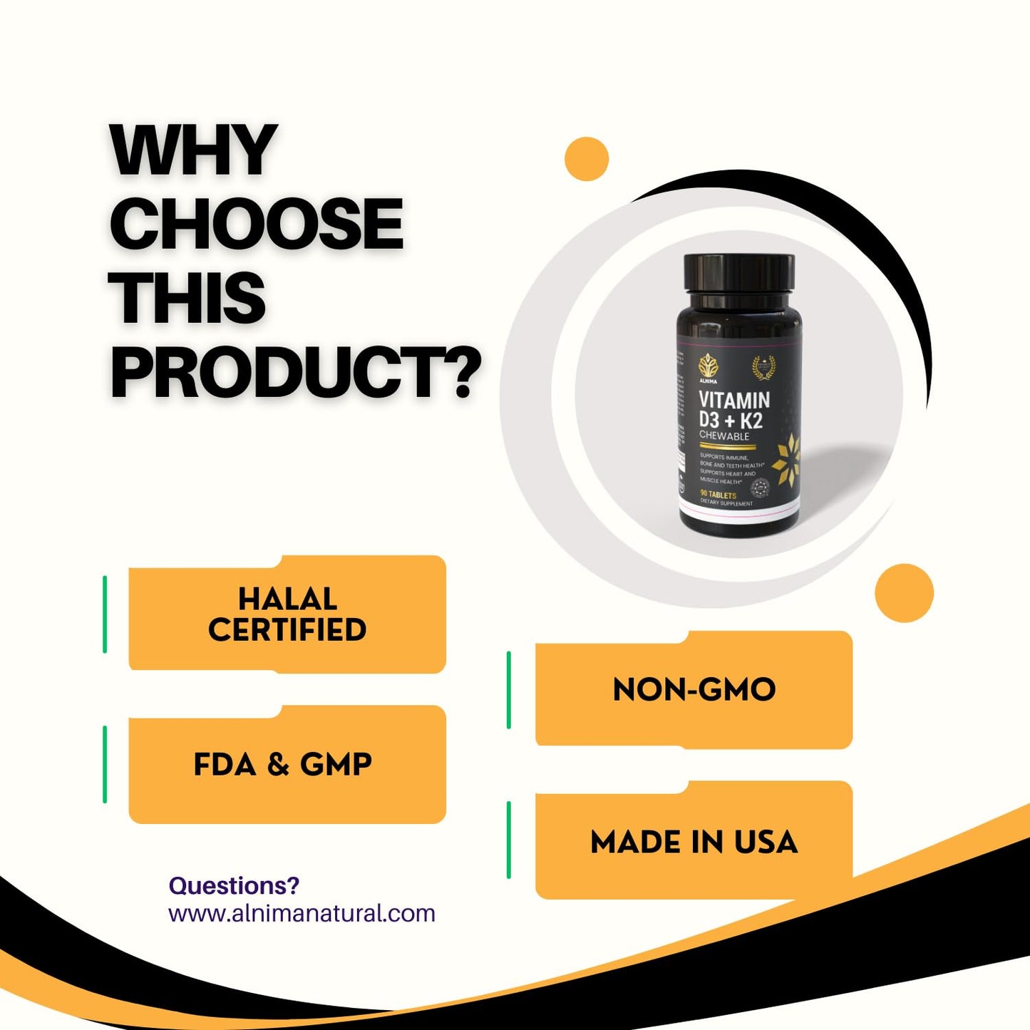 ALNIMA Vitamina D3 2000 UI y K2 MK-7 Masticable Apoyo Huesos Corazón 90 Tabletas