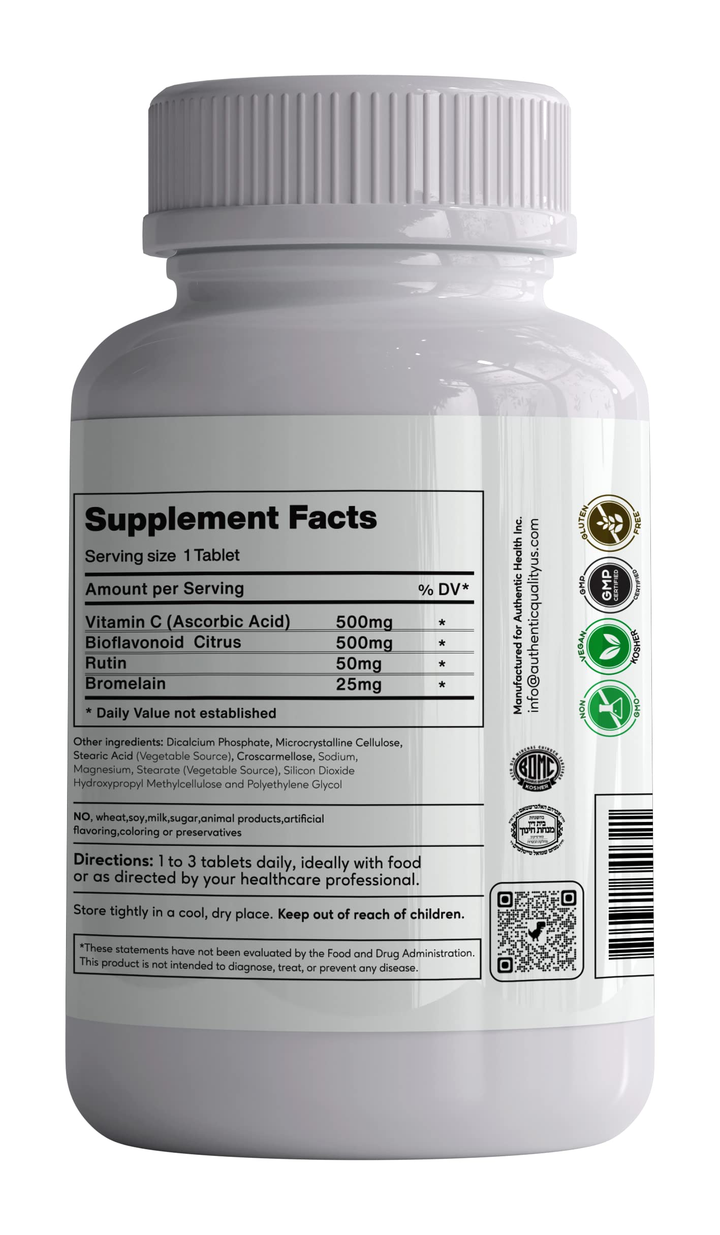 Authentic C Vitamina C con Bioflavonoides 120 tabletas kosher