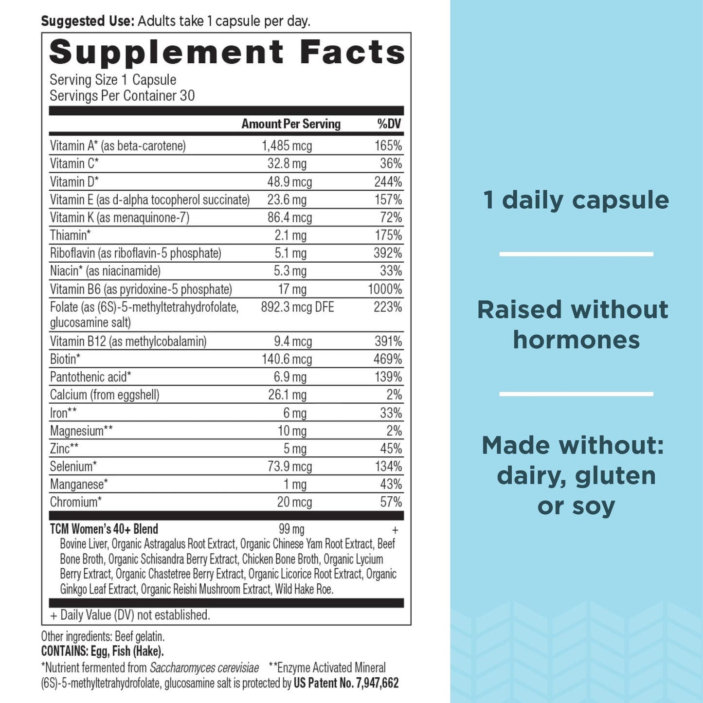 Multivitamínico para Mujeres Ancient Nutrition 40+ una vez al día, 30 cápsulas más polvo de proteína multi colágeno sin sabor para 40 porciones.