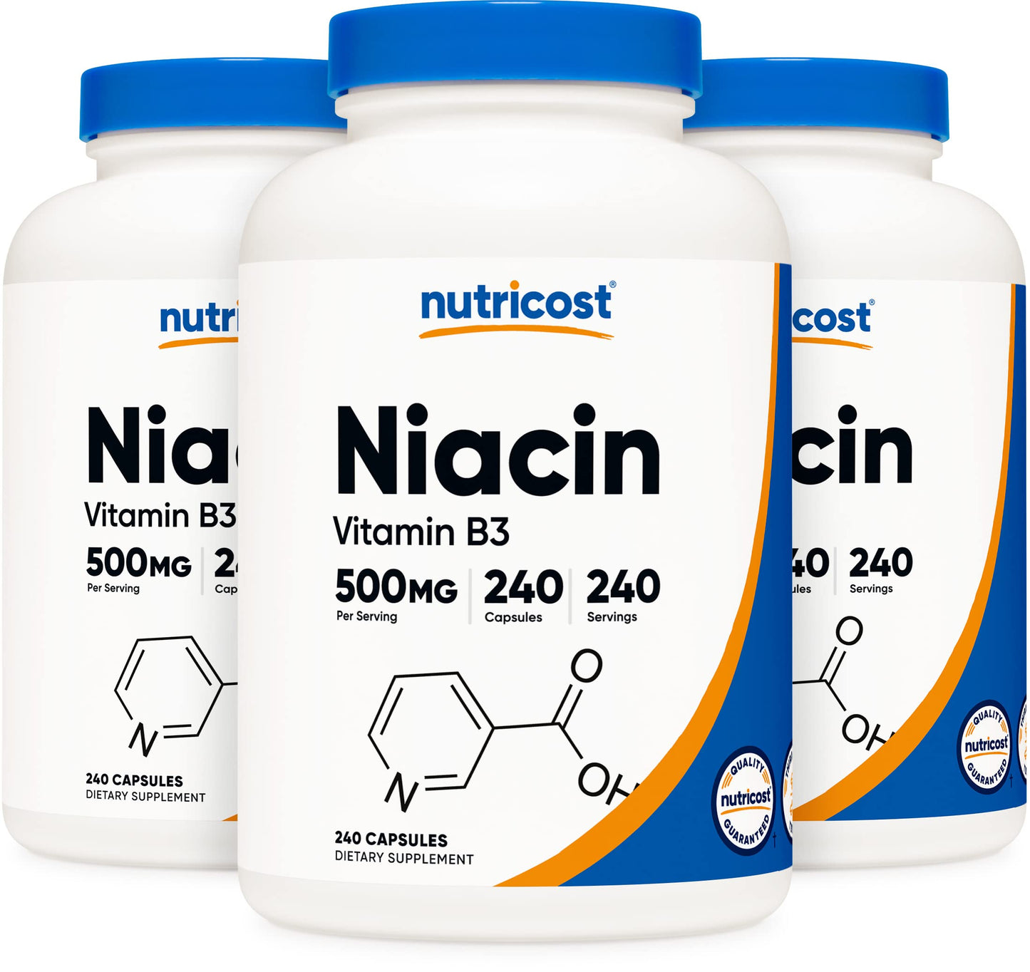 Nutricost Niacina Vitamina B3 500mg 240 cápsulas paquete 3 flush