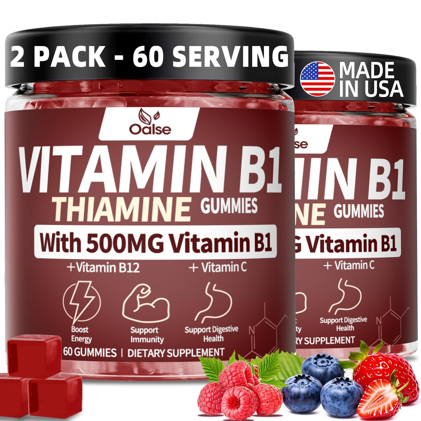 - 1. FÓRMULA ALTAMENTE ABSORBIBLE Y BIODISPONIBLE: Nuestras gomitas de vitamina B1 contienen 500 mg de tiamina, vitaminas B12, C y D. Esta potente combinación asegura la máxima biodisponibilidad de nutrientes, mejora el metabolismo del cuerpo*, apoya el sistema nervioso*, fortalece el sistema inmunológico, mejora el olor de pies*, y apoya la función de memoria*. Dado que la vitamina B1 no se puede almacenar en el cuerpo, es importante obtener suficiente de ella todos los días.