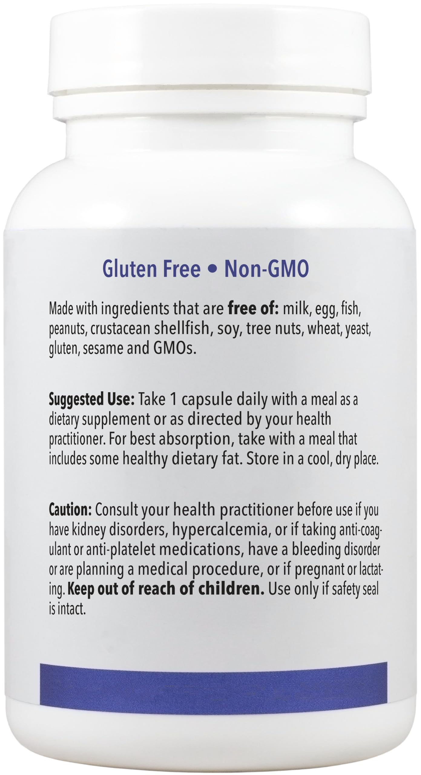 - Optimización de salud ósea y cardíaca: Ayuda a dirigir el calcio a los huesos en lugar de a tejidos blandos*