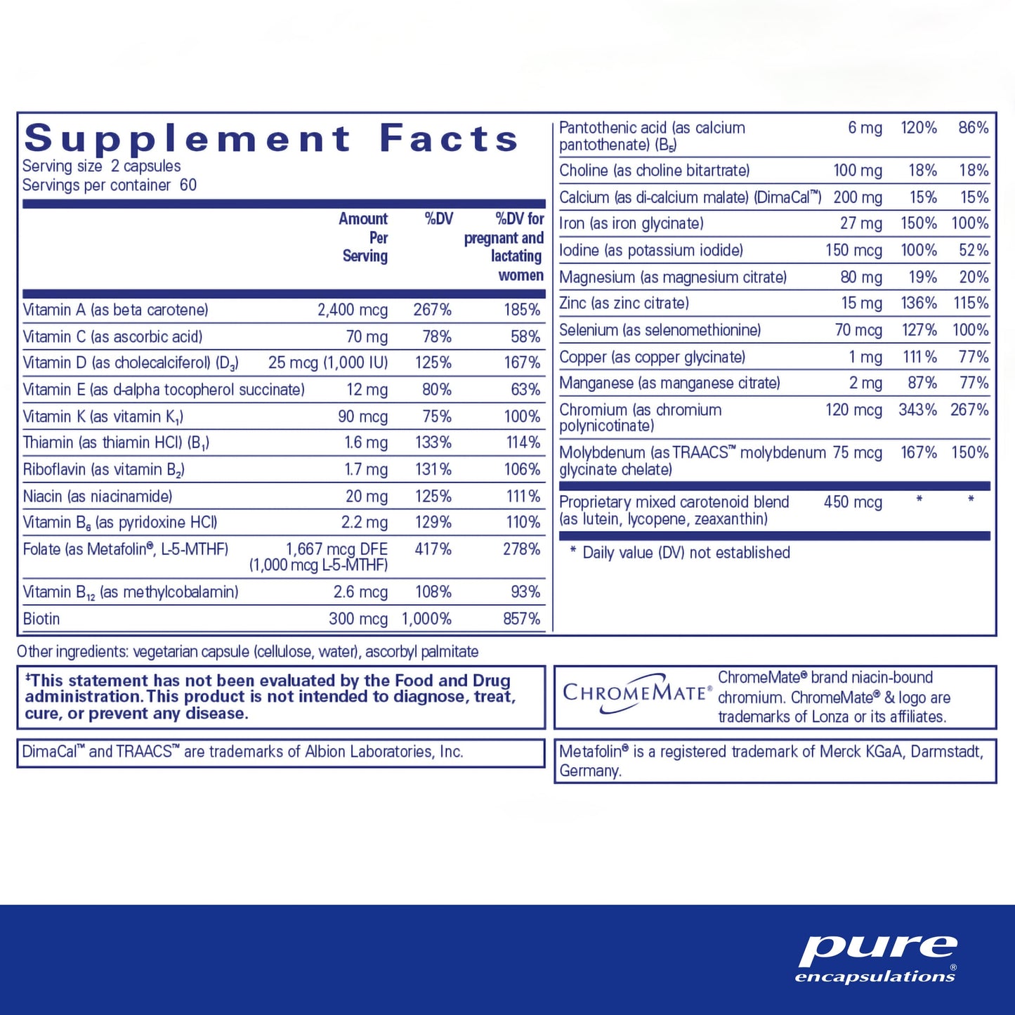 Pure Encapsulations PreNatal Nutrients para embarazo y lactancia 120 cápsulas