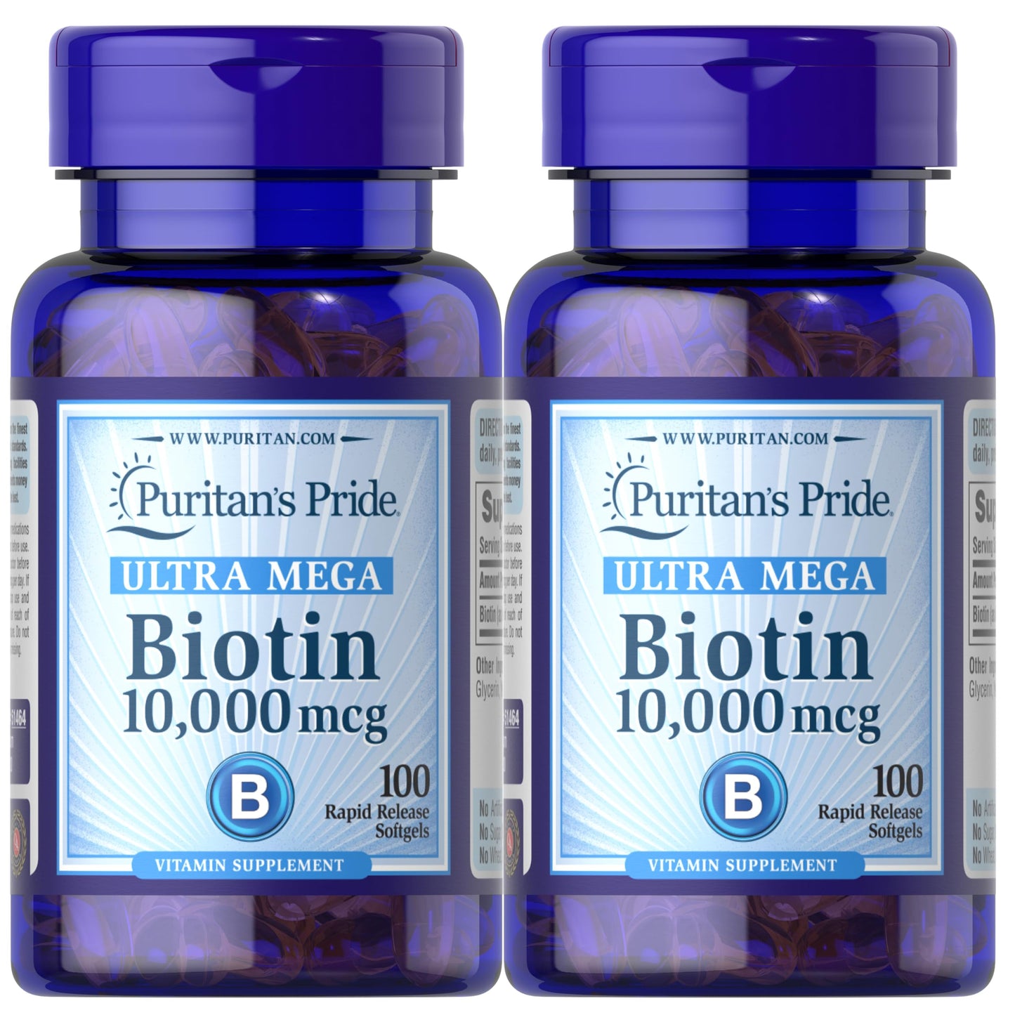 Puritan's Pride Biotina Ultra Mega 10,000mcg suplemento doble 100 softgels